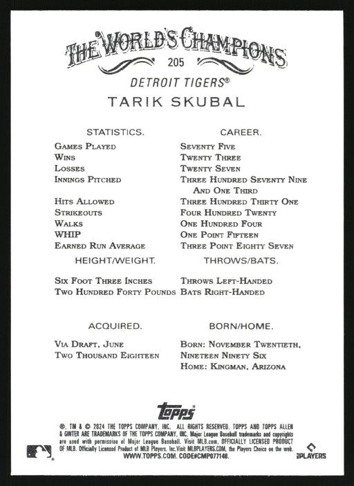 View full details2024 Topps Allen & Ginter #205 Tarik Skubal