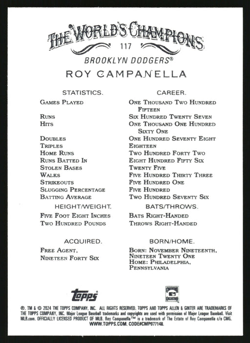 View full details2024 Topps Allen & Ginter #117 Roy Campanella