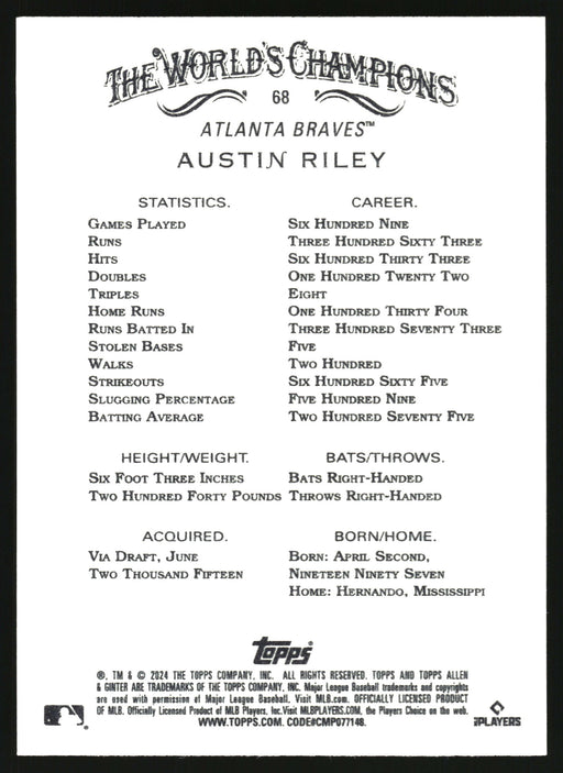 View full details2024 Topps Allen & Ginter #68 Austin Riley