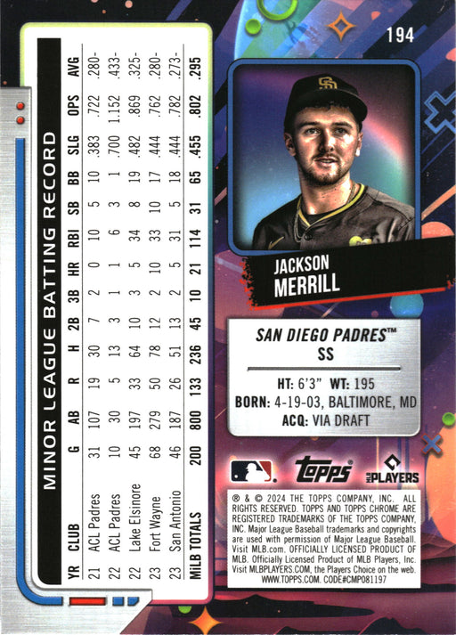 View full details2024 Topps Chrome Cosmic #194 Jackson Merrill