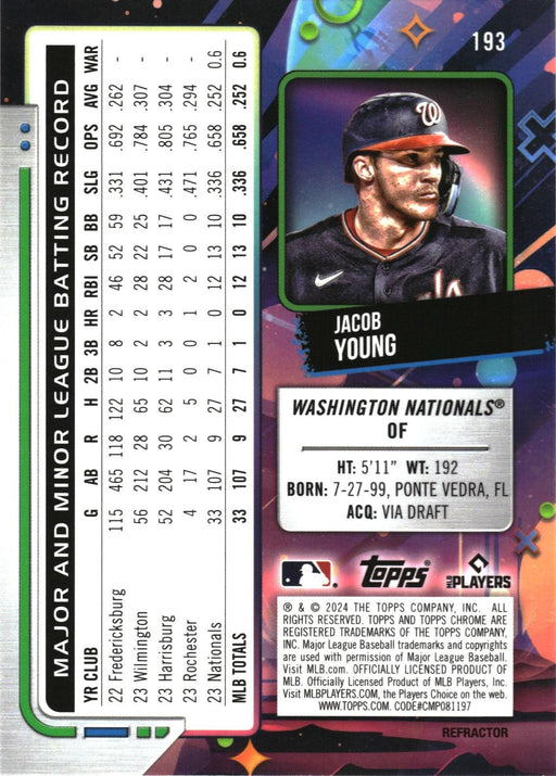 View full details2024 Topps Chrome Cosmic #193 Jacob Young Refractors