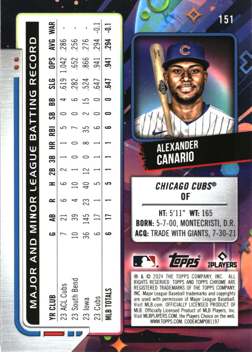 View full details2024 Topps Chrome Cosmic #151 Alexander Canario