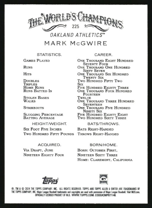 View full details2024 Topps Allen & Ginter #225 Mark McGwire